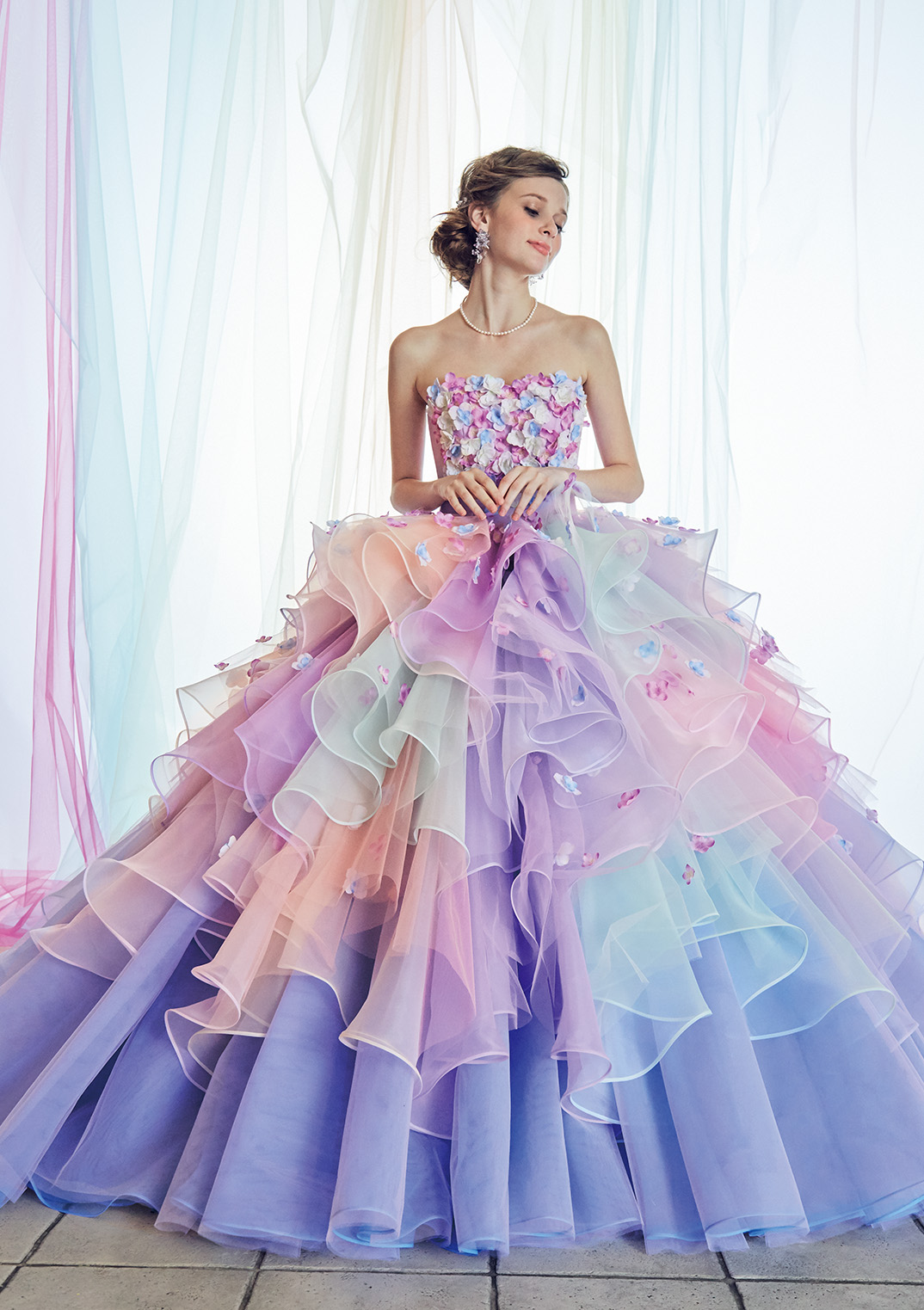 神田うのがプロデュース、チーフデザイナーを務める「シェ-ナ・ドゥ-ノ」のカラ-ドレス。